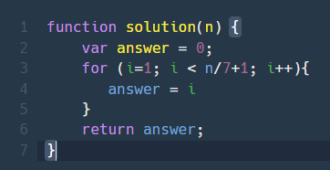 for (i=1; i < n/7+1; i++){