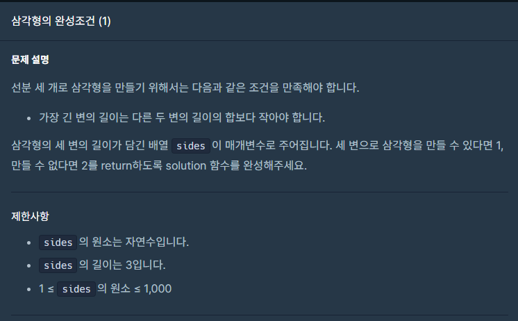 return answer = (a[0] < a[1]+a[2]) ? 1 : 2