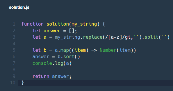 let a = my_string.replace(/[a-z]/gi,'').split('')