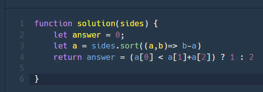 return answer = (a[0] < a[1]+a[2]) ? 1 : 2