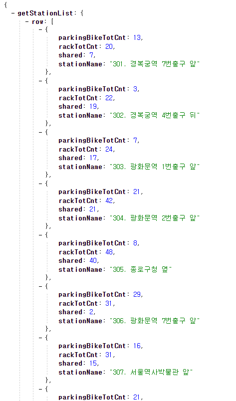 | 출력화면 | 따릉이 Open API |