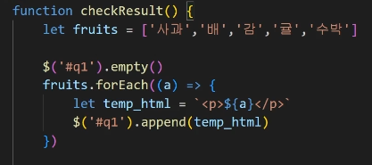 - 변수선언, 배열, 객체, 조건문, forEach