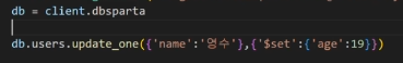 db.users.update_one({'name': 'bobby'}, {'$set': {'age': 19}})