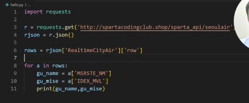 - import requests : fetch와 같은 역할
