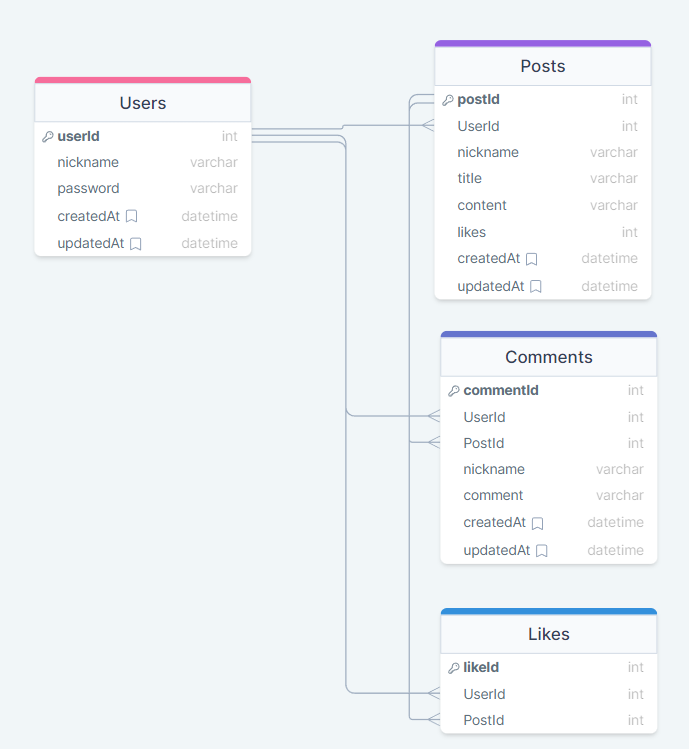 - 처음엔 Likes테이블의 postId 컬럼의 데이터를 조회 및 합산하여 좋아요 수(likes)를 표현하려고 하였으나, 데이터가 많아질 경우 연산이 길어질 것으로 예상되어 좋아요/좋아요취소 시에 바로바로 Posts테이블에 반영되도록 로직을 변경