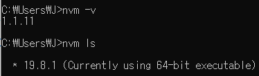 - nvm ls로 현재 설치된 노드버전 확인 가능