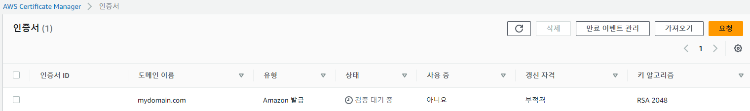 - Route53의 CNAME 이름/값들을 가비아에 dns레코드 추가 절차를 해야한다는 레퍼런스가 있어서 해당 부분도 진행, 발급에 성공하였으나 가비아에 추가해야 인증이 진행되는지는 불명확한 상태