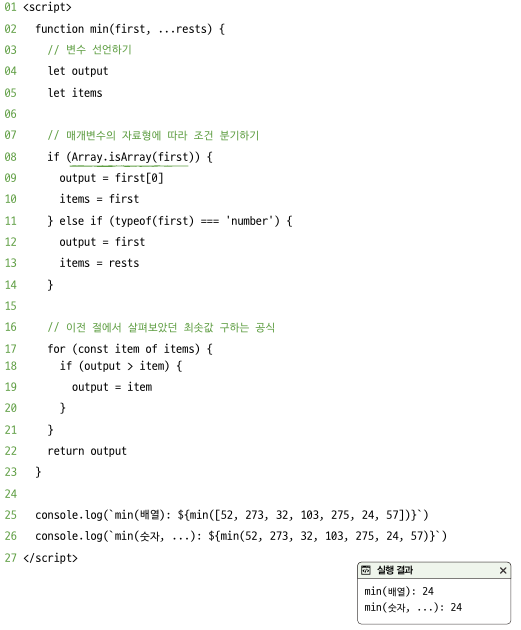 1) 배열 함수로 사용, 배열 내부 요소 사용