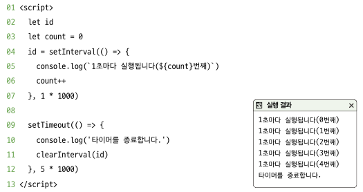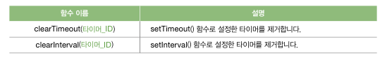3) 타이머 종료시 clearTimeout() , clearInterval()