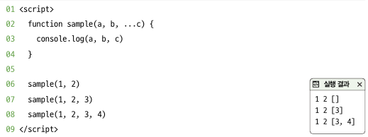 1) 가변 매개함수 : 개수가 고정적이지 않은 매개변수