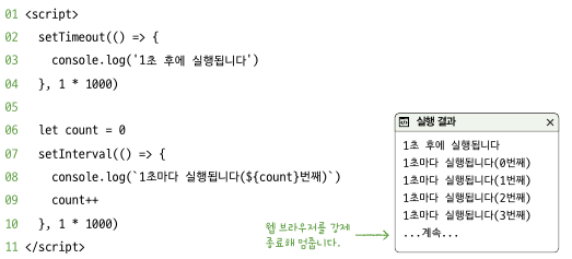 1) 특정 시간마다, 특정 시간 이후 콜백 함수 호출